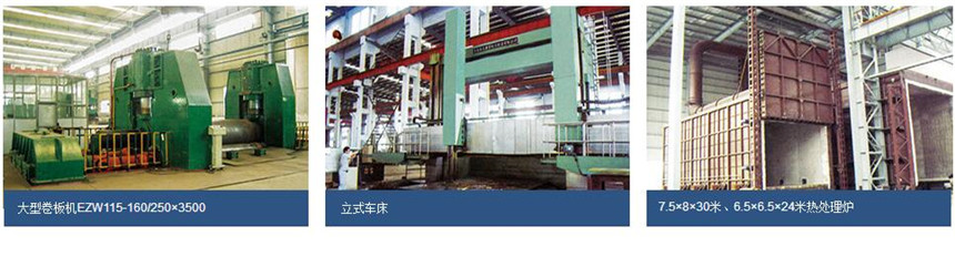 車間擁有生產(chǎn)設備1100臺套,擁有∮32-∮76蛇形管生產(chǎn)流水線和膜式壁拼排焊接機,行車最大起吊能力達700噸。冷卷180mm/熱卷250mm板厚的重型卷板機,(8m×8m×30m,800℃)整體熱處理爐;建有大型探傷室,配備1000℃的高溫電子試驗機,6MeV電子直線加速器,穿透能力達250mmy射線;擁有林肯帶極堆焊機、深孔對接焊管板自動焊機、小管內(nèi)孔堆焊機;金工車間配有CKX511000型立車、數(shù)控立車加工最大尺寸達φ6.3m*4m,4m龍門數(shù)控多頭深孔鉆床和行程12m鏜軸φ200mm的TJK6P20A數(shù)控落地鏜銑床等先進的重型加工設備。