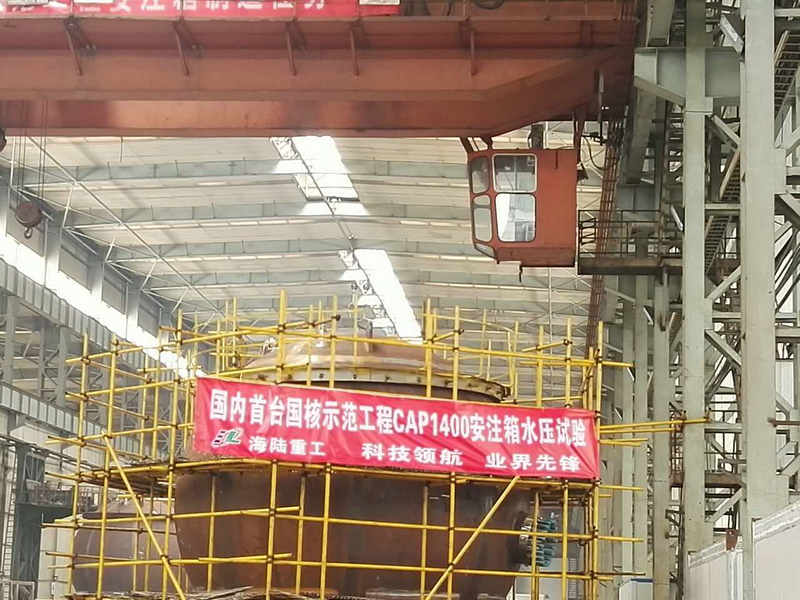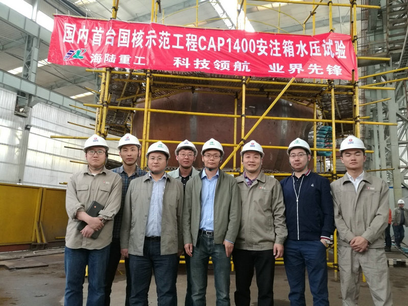 2017年4月25日16時20分,CAP1400示范工程1號機組首臺安注箱在海陸重工核電車間水壓試驗順利完成!