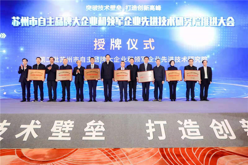 2019年12月21日,徐元生董事長率隊參加了由蘇州市委、市政府組織召開的第二批蘇州自主品牌大企業(yè)和領(lǐng)軍企業(yè)先進(jìn)技術(shù)研究院推進(jìn)大會,并榮獲市政府授牌蘇州市大企業(yè)和領(lǐng)軍企業(yè)先進(jìn)技術(shù)研究院。