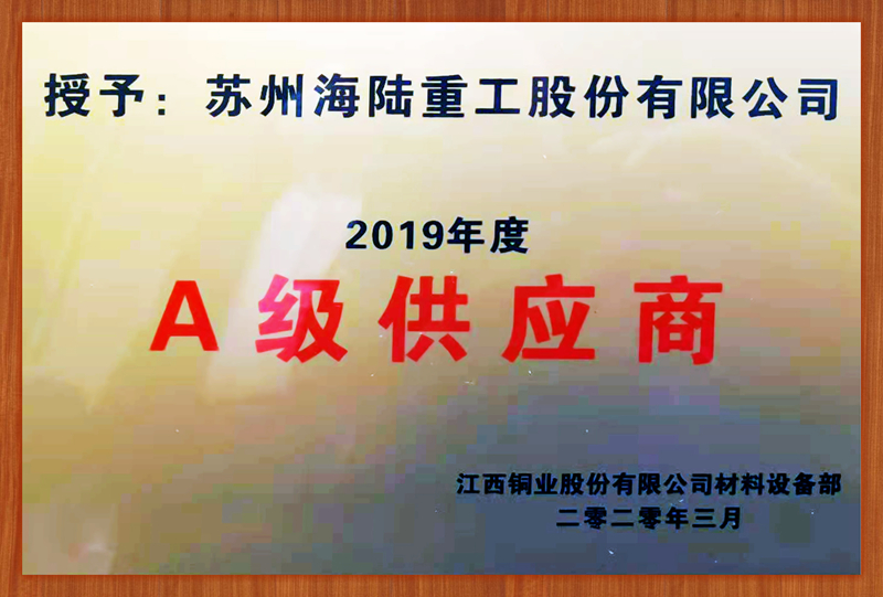 自2019年江銅集團(tuán)首次舉行年度A級(jí)供應(yīng)商授牌表彰活動(dòng)起,我公司已連續(xù)兩年獲此殊榮。