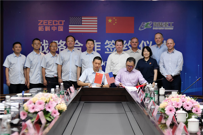 8月23日,蘇州海陸重工股份有限公司與柘科(中國)工程設(shè)備有限公司簽署戰(zhàn)略合作協(xié)議。美國ZEECO全球總裁及首席執(zhí)行官Darton Zink先生率領(lǐng)高級副總裁Terry W. Dark、制造總監(jiān)Darrell Thomas、市場和業(yè)務(wù)總監(jiān)Brent Williamson、東南亞分公司總經(jīng)理Anand Gokhale、柘科(中國)總經(jīng)理馬原及管理團(tuán)隊(duì),海陸重工董事長徐元生、總經(jīng)理徐冉等公司主要領(lǐng)導(dǎo)共同出席戰(zhàn)略合作簽約儀式。